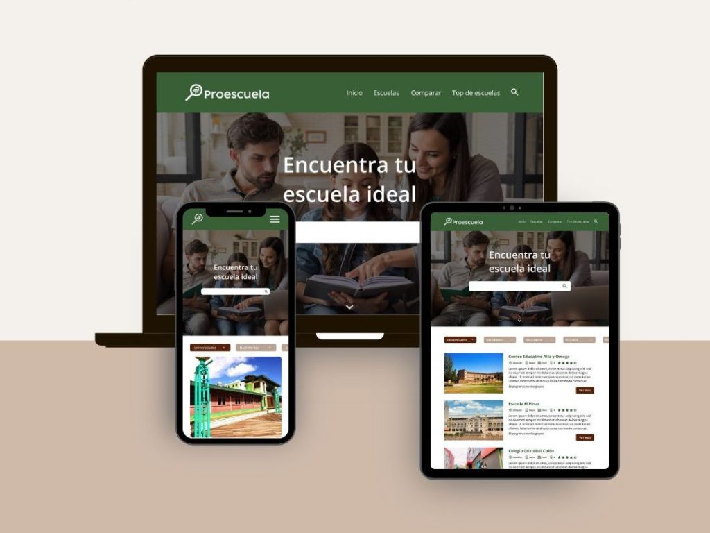 Diseñé un sitio web adaptable que te ayuda a encontrar la escuela ideal según tus necesidades y objetivos.